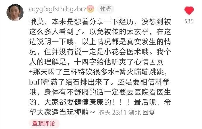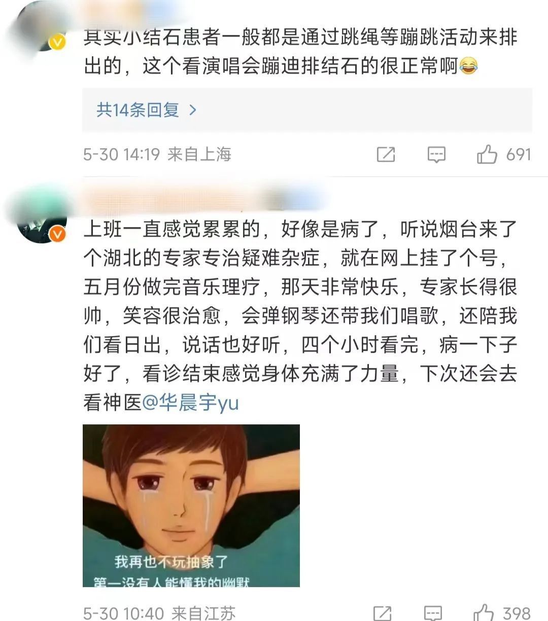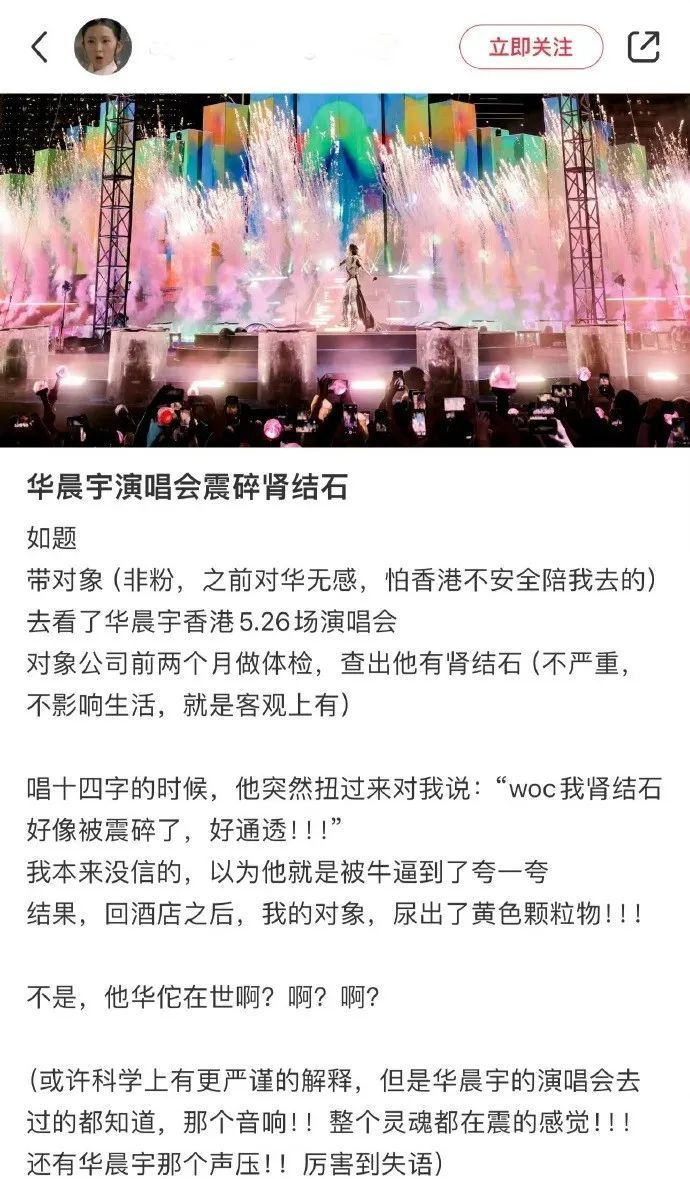 这位网友欣忭地暗示:“从未思过会在这么的情况下排出肾结石,这几乎太神奇了!”她还挑升在酬酢媒体上共享了这一资历,并感谢华晨宇带给他们如斯紧记的回忆。